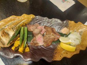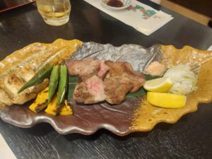 そして地味に野菜炭火焼き2種(アスパラ、山芋、しいたけ、玉ねぎ)の中から2種類選べるのですが、これもあっさりしてウマイ😋