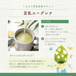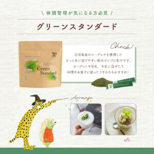 栄養豊富な石垣島の『ユーグレナ』に、麹菌をユーグレナで育て酵素パワーをアップさせた『みどり麹』と、腸にダイレクトに作用する『乳酸菌生産物質』を配合した健康な毎日を過ごすための飲料(青汁)です。