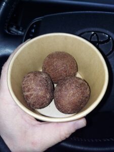 等々の評判を聞いて早速買いにいってみたのですが暖かくてフワフワのショコラボールの中から、生チョコのような濃厚なショコラソースがトロけてきちゃいます!